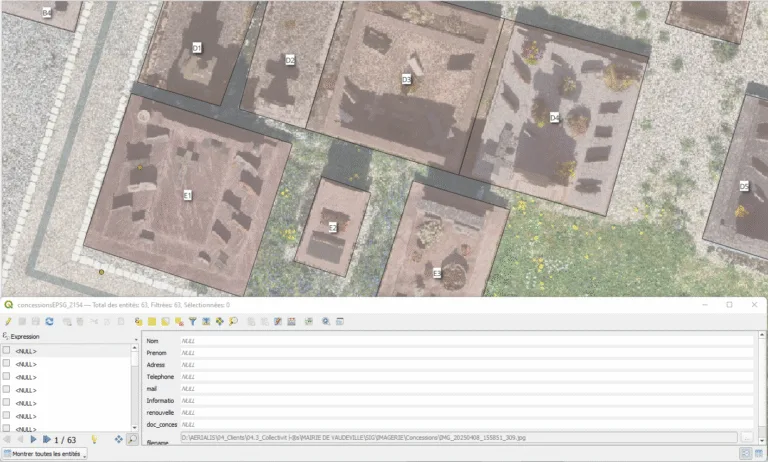 Les orthophotographies géoréférencées permettent de cartographier chaque sépulture avec précision, de vérifier l’état des emplacements et d’intégrer les données dans les outils SIG communaux.
